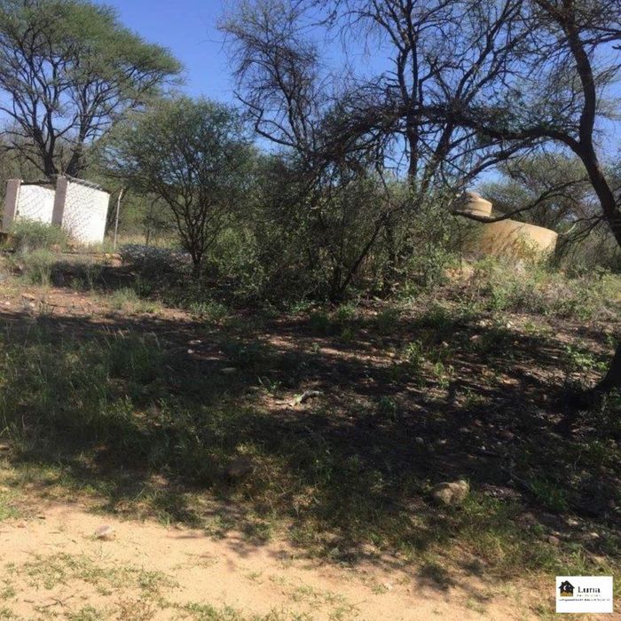 Smallholding with waterhole, fenced estate, and livestock permitted; 30 km from Okahandja towards Karibib. Foreign investment allowed.