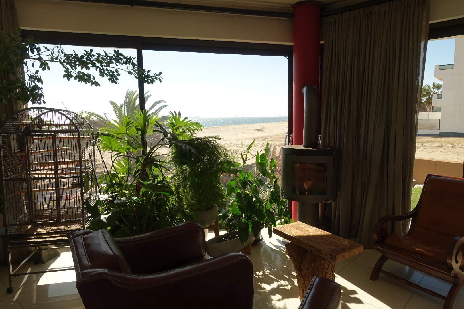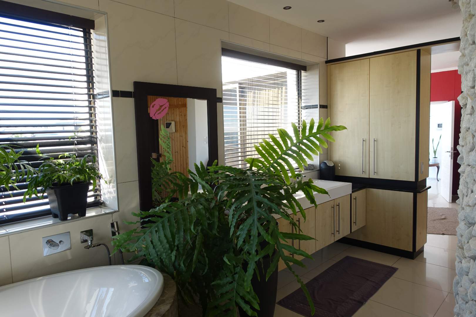 * Spacious entertainment room with indoor BBQ leading onto verandah currently sheltered by wooden windscreen wall