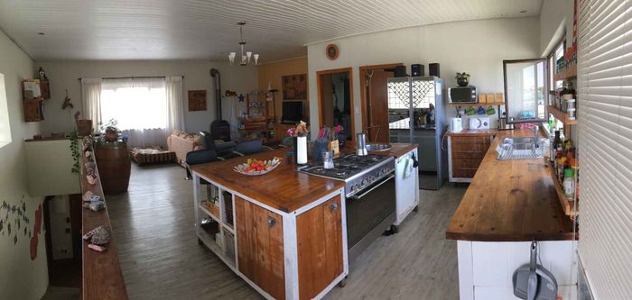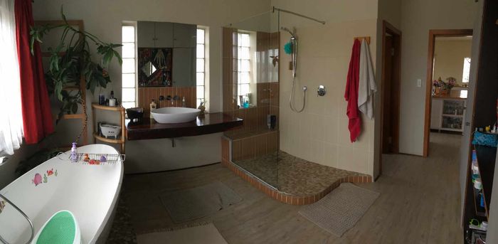 3 bedrooms, 2 full bathrooms, guest WC, open-plan living area, scullery, indoor BBQ, veranda; 225sqm dwelling on 600sqm erf.