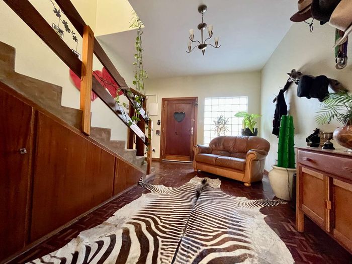 Entertain effortlessly with open-plan living and indoor braai in a neat, secure gated complex; upstairs balcony and walk-in closet add comfort — three bedrooms, 2.5 baths, double garage.