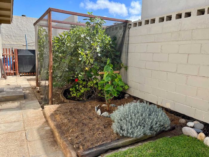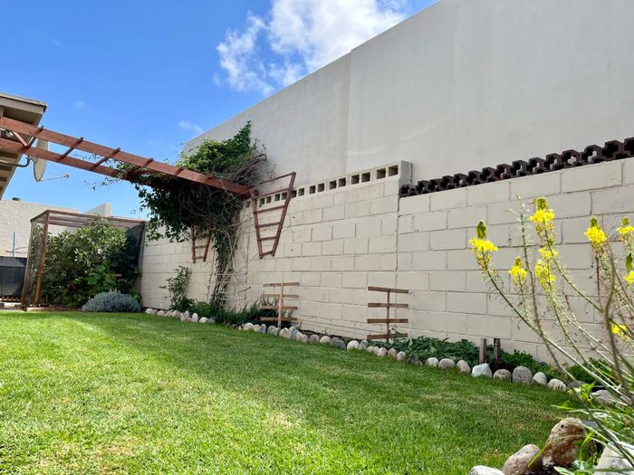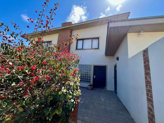 Double-storey townhouse near beach, ideal for Airbnb, features 3 bedrooms, 2.5 baths, enclosed braai area, and double garage.