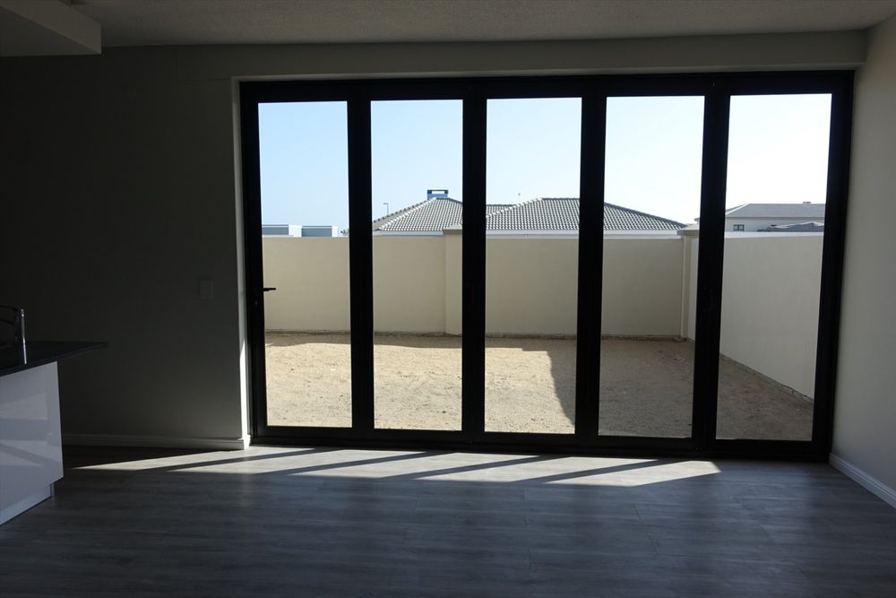Aluminum folding door leading onto private courtyard/garden