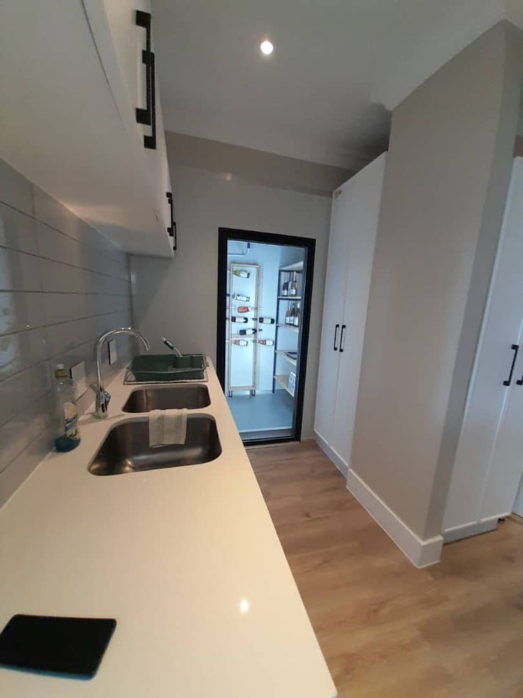 * Walk-in fridge with wine racks