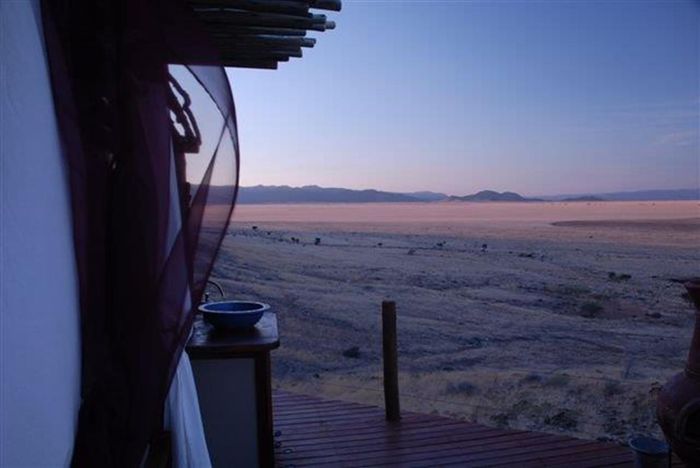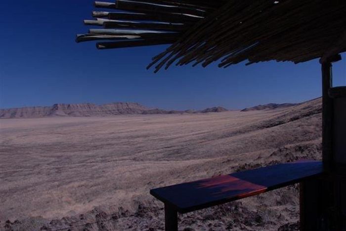 Escape to an expansive wilderness retreat 15 km north of Solitaire, bordering a national park with endless views, featuring a wooden star-camp deck with bathroom for unforgettable sundowners.