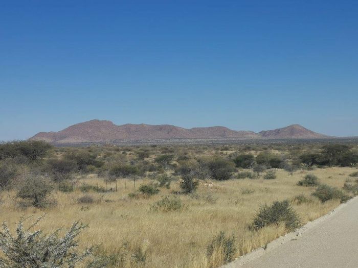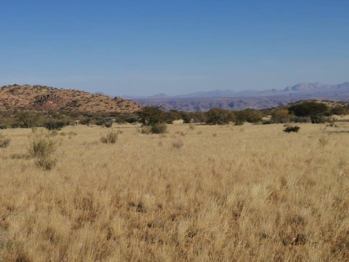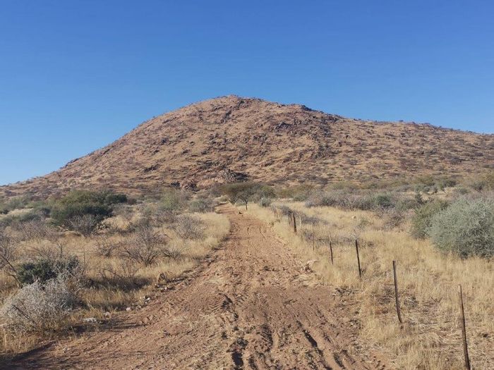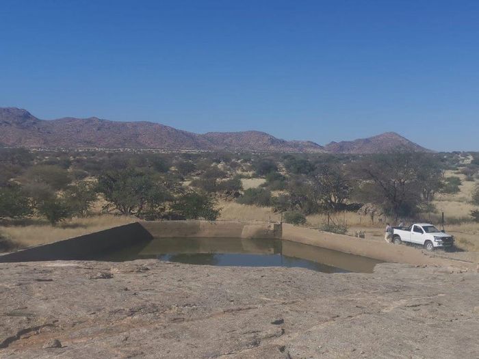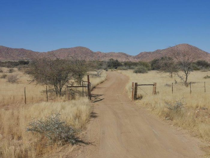 Expansive farm 30 km south of Karibib by the Etusis mountains, with farmhouse, workshops and a vacant school complex (churches, classrooms, teacher housing) — 14,000 ha, subdividable.
