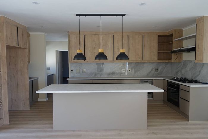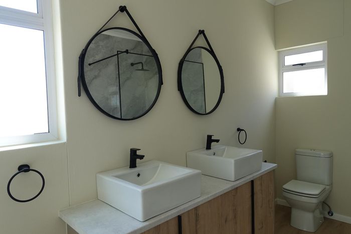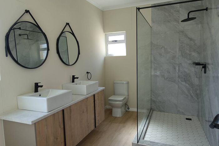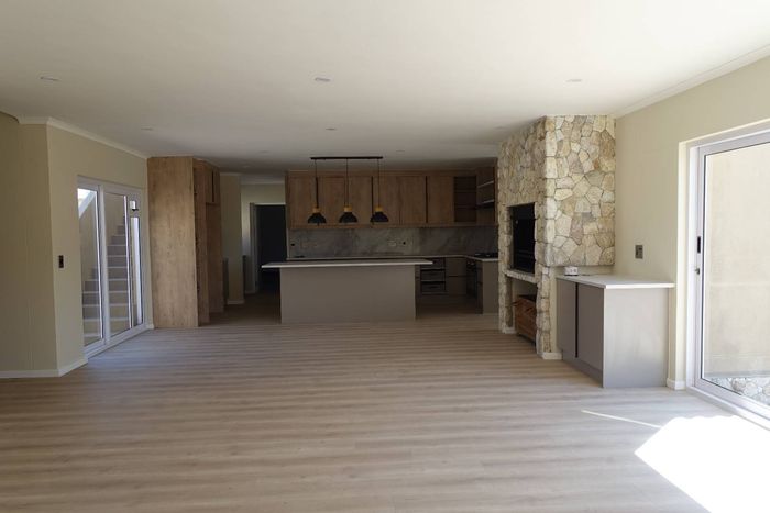 3 bedrooms, 2 full bathrooms, guest WC, open-plan living area, scullery, indoor BBQ, veranda; 225sqm dwelling on 600sqm erf.
