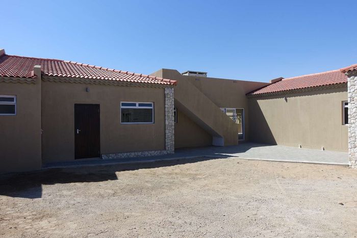 Private riverside retreat overlooking Swakop River and dunes, ideal for entertaining on a spacious veranda and braai, lush landscaped garden, plus separate one-bedroom flat and two garages.