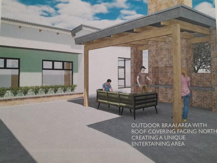 Contemporary corner property in a quiet neighbourhood with open trusses and high-end finishes, sliders opening to garden, scullery and BBQ area. Three beds, three baths, double garage.