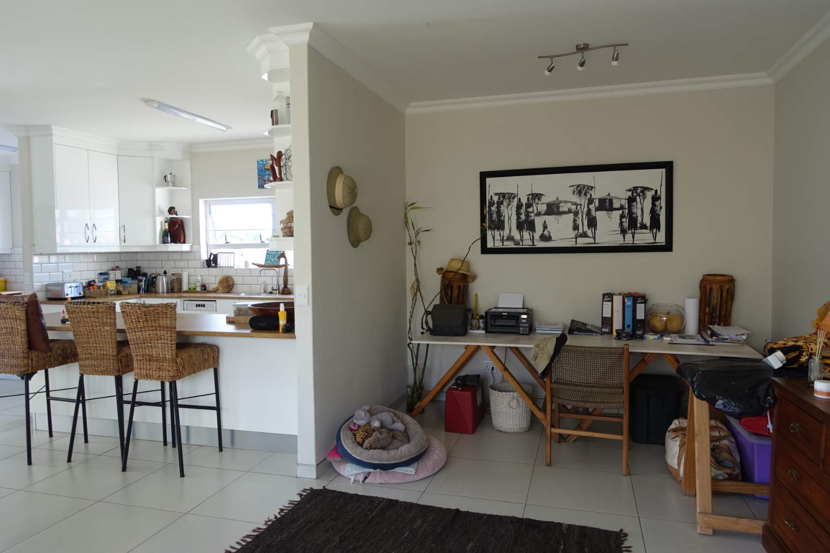 Kitchen flows into the living area & study corner)