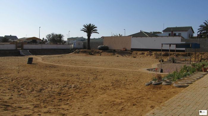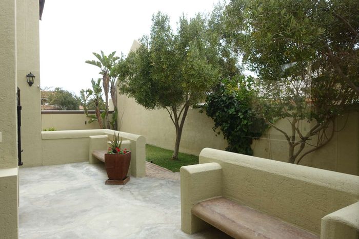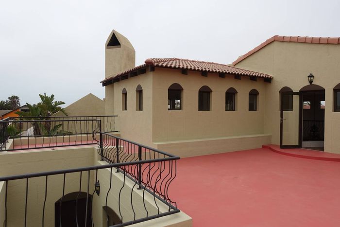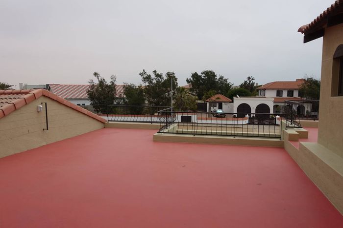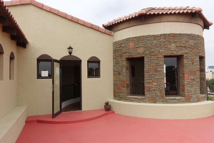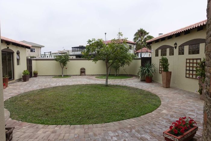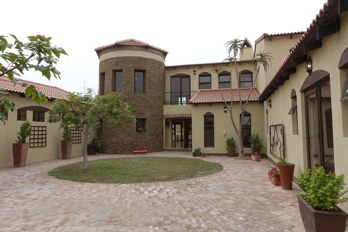 Spacious double-story house with garden, separate flat, and security features on two titled erven overlooking the Swakop River and dunes.