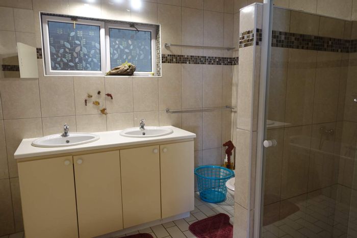 Three bedrooms, 2.5 bathrooms, 313 m² home on a 1,345 m² erf with garden and garage for four vehicles.