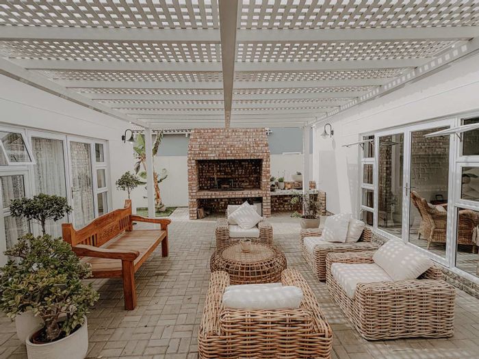 Effortless family entertaining in a brand-new home within a peaceful, established neighbourhood — wind-protected U-shaped courtyard with pergola and huge braai. Three bedrooms, three-and-a-half bathrooms, triple garage.