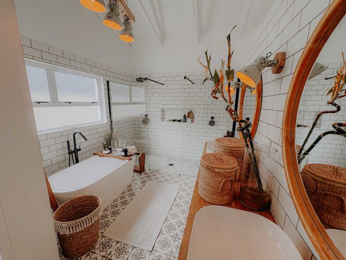 3 bedrooms, 2 full bathrooms, guest WC, open-plan living area, scullery, indoor BBQ, veranda; 225sqm dwelling on 600sqm erf.