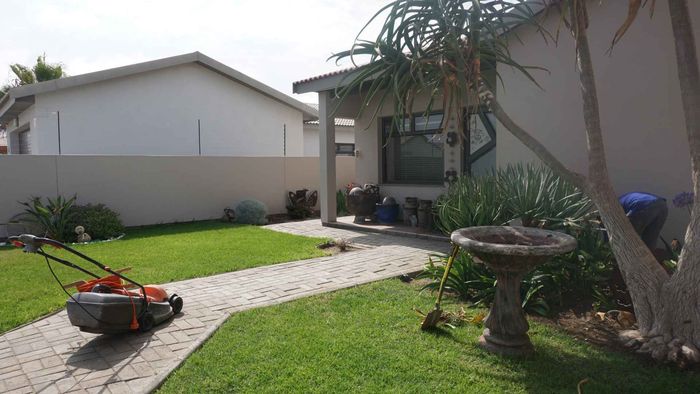 House near Pro-Ed Academy and beach, featuring 3 bedrooms, 2 bathrooms, open-plan living, garden, and double garage.