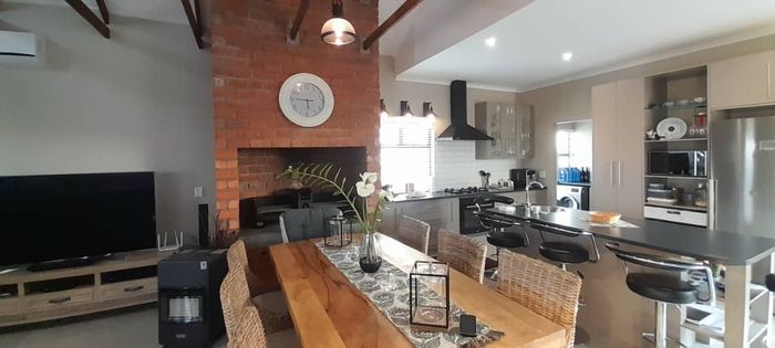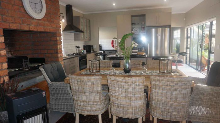 3 bedrooms, 2 full bathrooms, guest WC, open-plan living area, scullery, indoor BBQ, veranda; 225sqm dwelling on 600sqm erf.