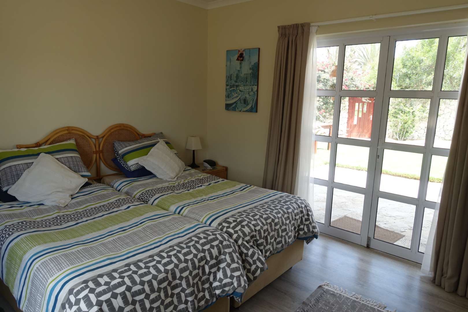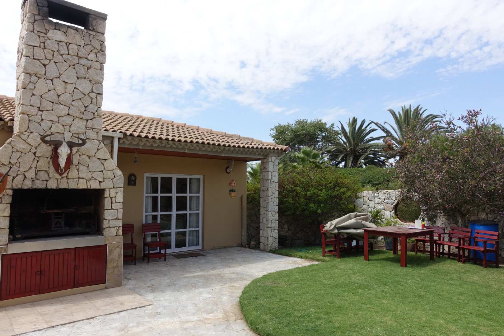 Large Living room with big windows and sliding doors opening onto patio with BBQ and lovely garden with high walls