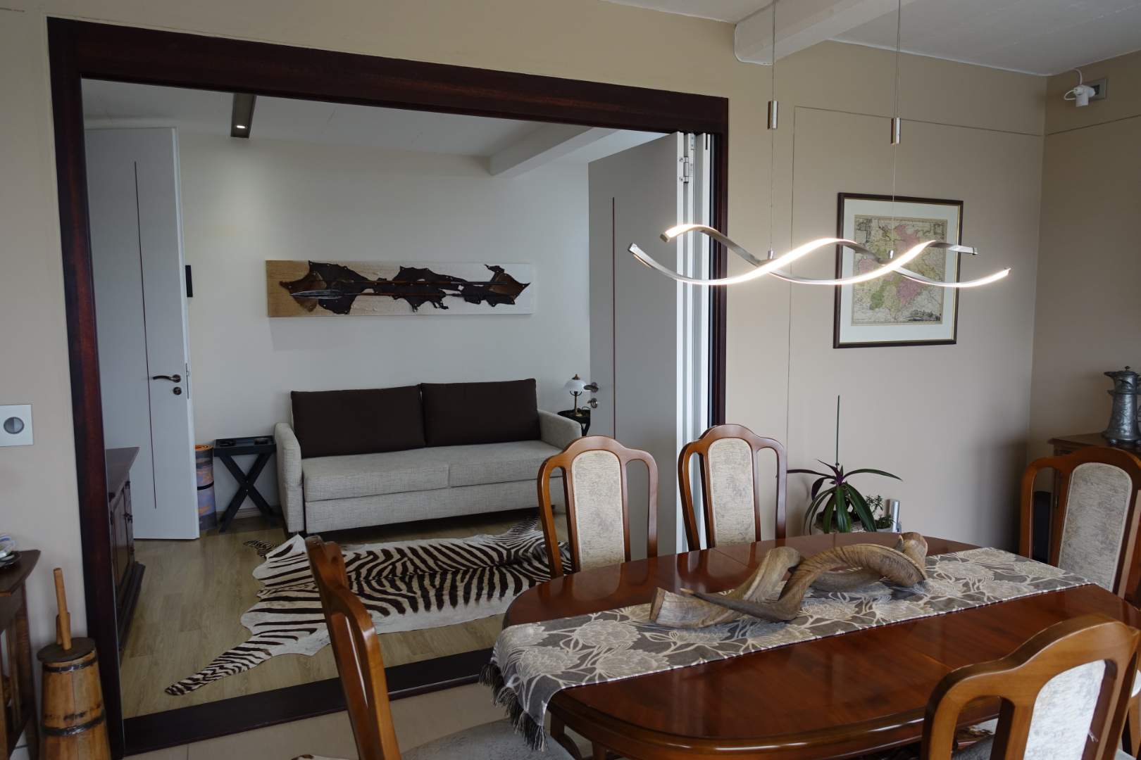 Separate Lounge with wood burner leading onto spacious North-facing terrace (75sqm) with sunroof slider.