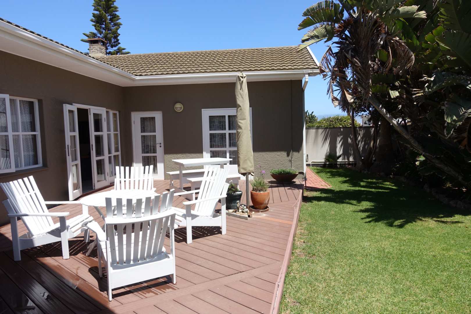 Veranda and lovely garden.