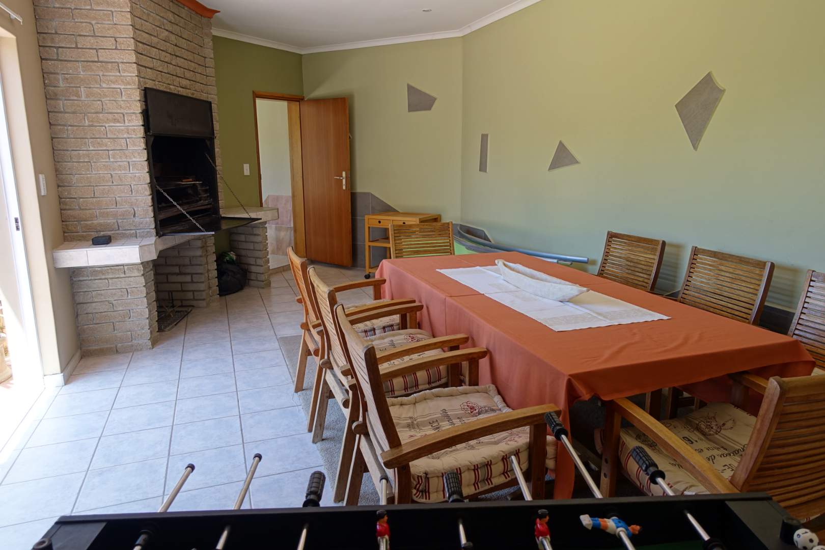 Bedroom, bathroom (shower), entertainment area with BBQ and paved veranda.
