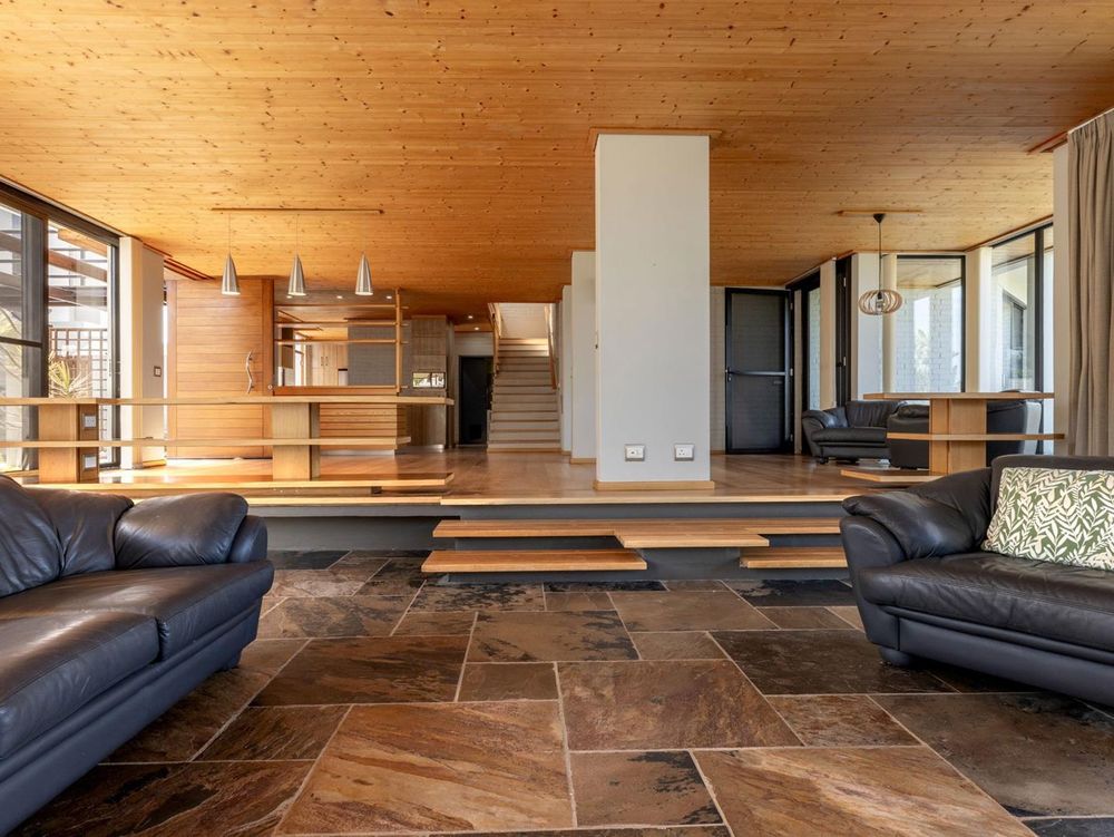 Just a short walk from the ocean, this stunning 5-bedroom home offers breathtaking views of both the coastline and Paddock Gardens. With two en-suite bedrooms, a spacious living room with slate tiles and fireplace, and a dining area with hardwood floors and ocean vistas, this home blends comfort with elegance. The well-equipped kitchen includes a scullery and large pantry. Upstairs features a bright family room opening to a patio with built-in BBQ, plus an open-plan study. A private guest suite or office is accessed via a unique open-air walkway. Lift shaft in place for future elevator. Includes double and single garages.